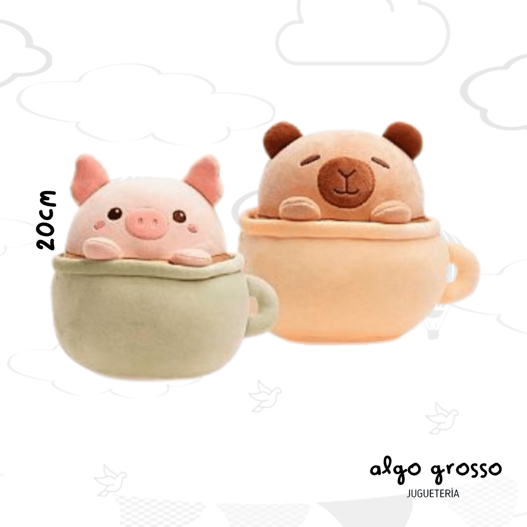 DESCRIPCIÓN: Peluche en forma de animalito en un taza con muchos colores, simula ser una taza con un animalito. Son suavecitos y muy lindos. CONSULTE MODELO DISPONIBLE